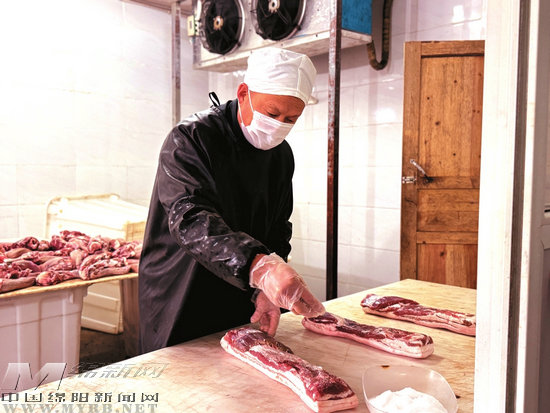 師傅麻利地腌制臘肉