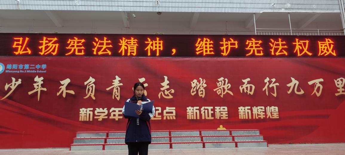 12月4日是全國憲法日。為了學習宣傳憲法,積極營造學憲法、講憲法的良好氛圍,不斷增強廣大師生的法治意識、法治觀念,推動依法治校進程,讓法治思想更加深入人心,12月2日,綿陽市第二中學利用朝會時間組織開展了以“弘揚憲法精神,維護憲法權(quán)威”為主題的2024年憲法誦讀活動,全體師生積極參與,營造出濃厚的尊法、學法氛圍。
