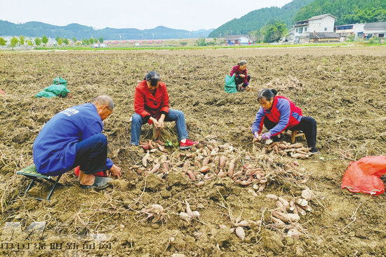 位于游仙區(qū)小枧鎮(zhèn)雨鳳村的市農(nóng)科院薯類種植基地,村民采收甘薯