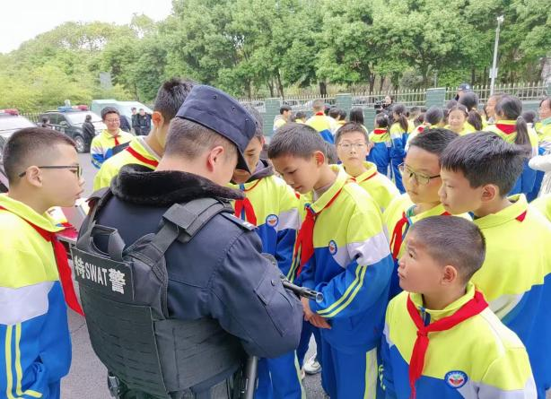 特警不僅耐心地講解裝備的用途,還在現(xiàn)場進(jìn)行演示操作。講解結(jié)束后,孩子們更是親自上手體驗(yàn),得以直觀地感受其強(qiáng)大的威力。這一經(jīng)歷在學(xué)生們的心中悄然種下了法治與安全的種子,讓他們對警察維護(hù)治安的工作有了更深的理解和敬意。