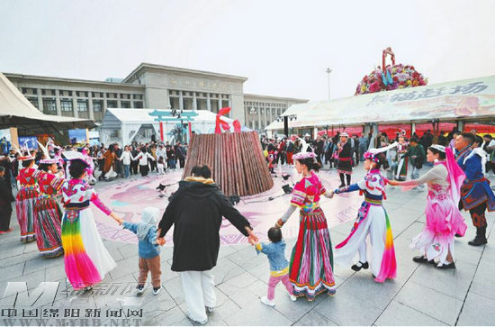 “文化三推”河北行,當(dāng)?shù)厥忻衽c白馬藏族同胞載歌載舞。(視覺(jué)綿陽(yáng)供圖)