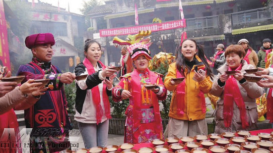 西羌神木寨一年一度的庖湯宴開席,村民與游客舉杯同歡。