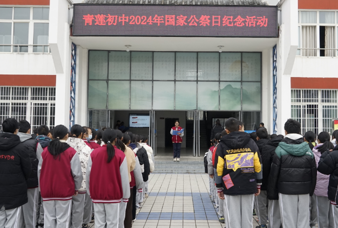 為了緬懷抗戰(zhàn)英烈的英雄事跡,弘揚(yáng)愛國主義精神,增強(qiáng)同學(xué)們的社會責(zé)任感和使命感,進(jìn)一步為中華民族偉大復(fù)興的中國夢凝聚力量,12月13日上午,江油市青蓮鎮(zhèn)初級中學(xué)開展了2024年國家公祭日主題教育活動。
