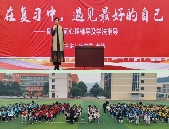 為了緩解學生的心理壓力和焦慮煩躁的情緒,幫助他們放松心情,釋放壓力,調整狀態(tài),挖掘潛能,踏實穩(wěn)進迎接期末考試,12月11日上午,游仙區(qū)新橋中學邀請游仙區(qū)心理教育專家宋素君老師來校,開展了以“在復習中,遇見最好的自己”為主題的2024年秋考前心理輔導和學法指導講座活動。