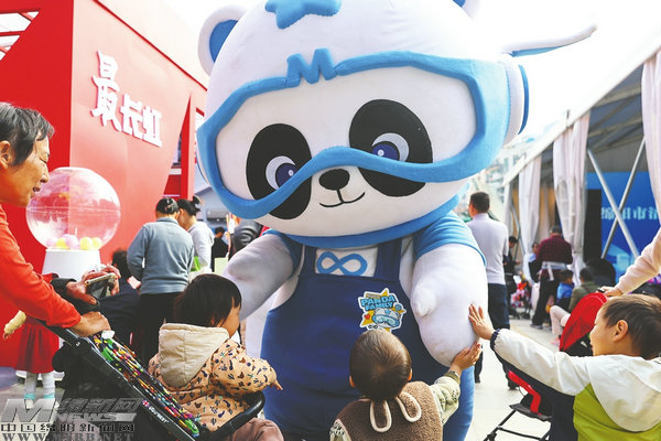 12月18日,綿陽(yáng)市“文化三推”深圳行啟幕。在南山區(qū)文體中心廣場(chǎng),大熊貓玩偶與兒童互動(dòng)。