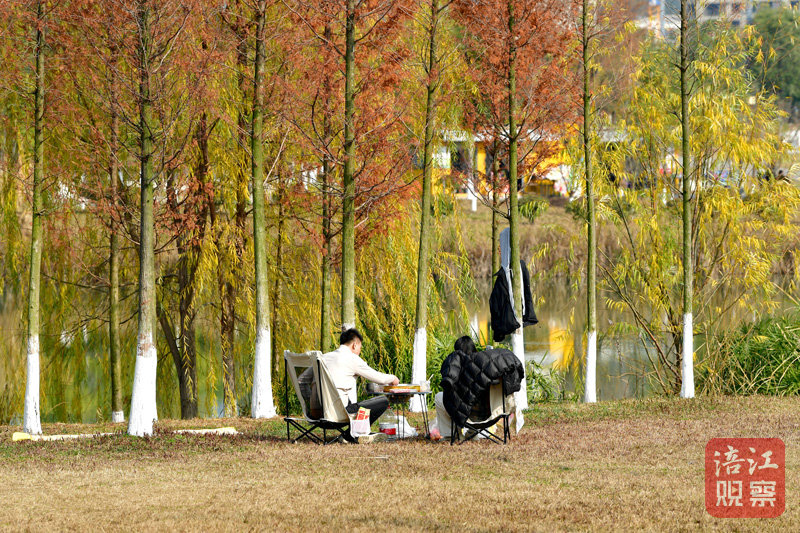 天藍(lán)水清、水鳥翱翔,湖中植被茂密、層林盡染,市民和游客或散步、或曬太陽、或圍爐煮茶……在溫暖悠閑的時(shí)光里,感受歲月的美好與溫柔。