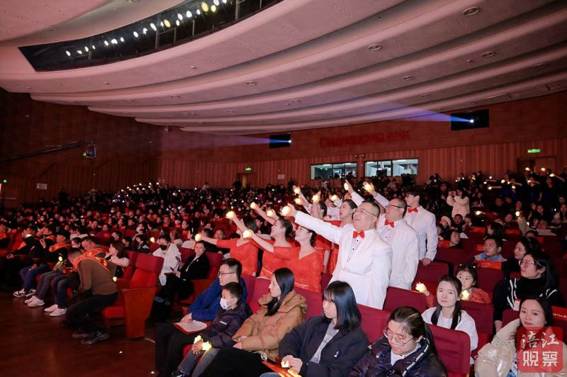 當(dāng)天19點(diǎn)30分,記者在音樂(lè)會(huì)現(xiàn)場(chǎng)看到,紅色的燈光照映著劇場(chǎng),現(xiàn)場(chǎng)座無(wú)虛席。隨著一曲熱情昂揚(yáng)的《追著幸福飛》,音樂(lè)會(huì)的帷幕正式拉開,也奏響了新春的序曲。