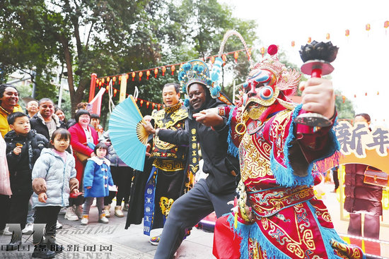 西南科技大學外籍師生在非遺市集體驗川劇變臉