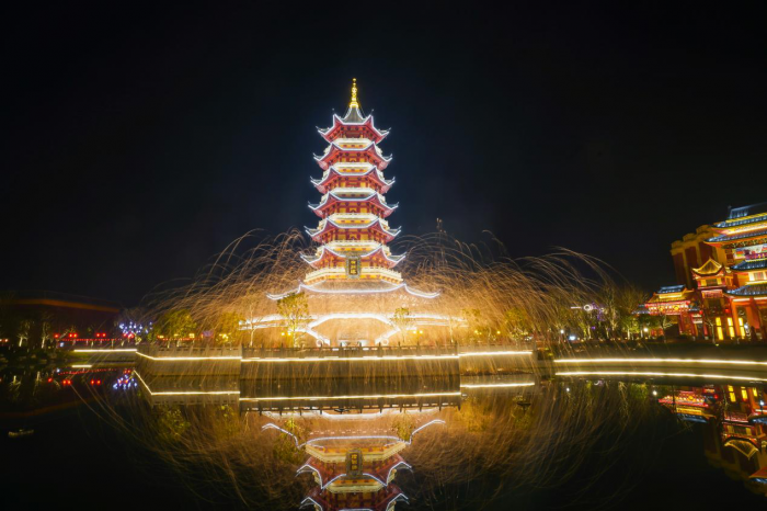 位于江油的綿陽方特東方神畫,春節(jié)期間連續(xù)15天開放夜場,并打造民俗文化小鎮(zhèn),配套開展各種民俗演藝活動(舞龍舞獅雜技表演等)、“雙龍戲珠”主題無人機天幕大秀等活動。李白故居·青蓮文化旅游度假區(qū)將推出新春嘉年華:沉浸式燈會、大唐非遺鐵花、盛唐篝火晚會、李白詩歌會、山歌對唱花船游、千尋鹿島、漢服巡游等,邀請游客感受盛唐氣象。