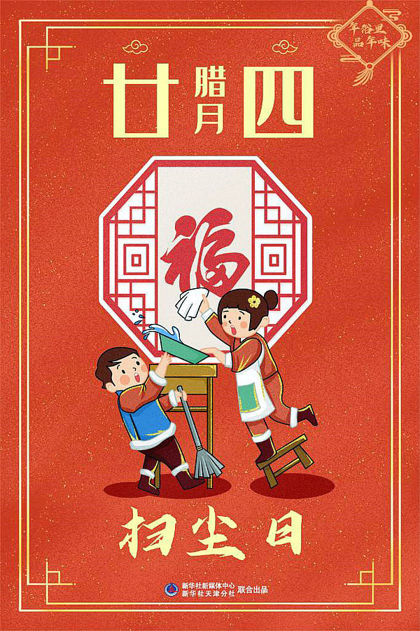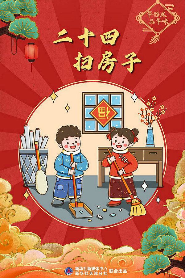 新華社天津2月3日電(記者周潤(rùn)?。┟裰V說:“二十四,掃房子”,意思是說臘月二十四這天,家家戶戶要把家中打掃得干干凈凈。掃掉犄角旮旯的塵土、擦凈門窗和玻璃、擦亮桌椅和櫥柜,面板、菜板、鍋蓋、蓋簾兒等炊具也都要洗刷一番。這種年終大掃除,民間謂之“掃年”,北方稱“掃房”,南方稱“撣塵”。