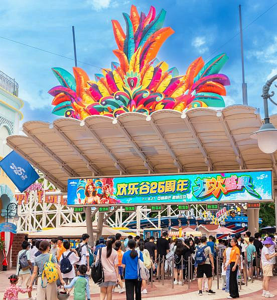 圖為歡樂谷集團(tuán)旗下主題公園,游客有序入園