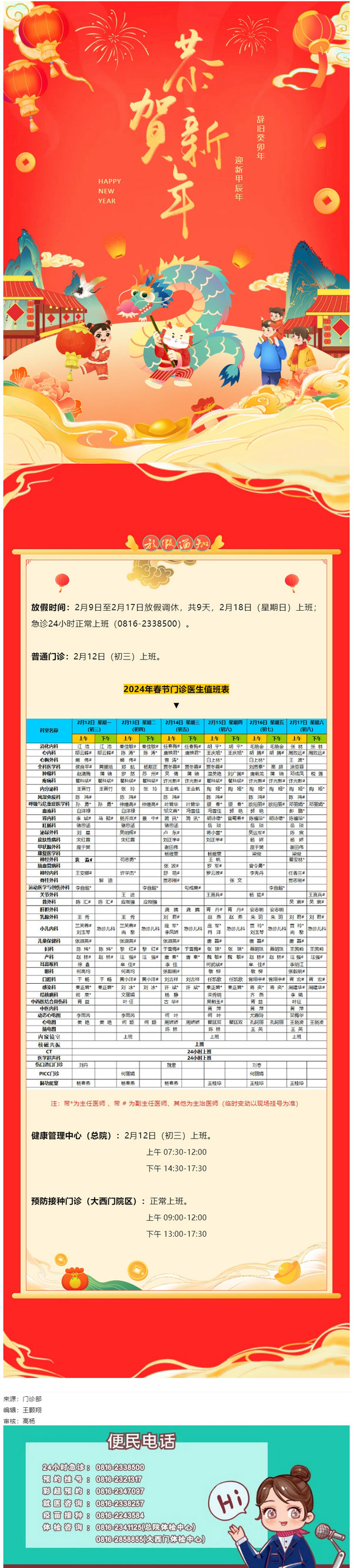 四0四醫(yī)院丨綿陽(yáng)市第一人民醫(yī)院 “春節(jié)”門(mén)診醫(yī)生及檢查科室值班安排