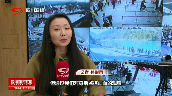 記者 孫時(shí)雨:這里是四川省文化和旅游廳,雖然八天的春節(jié)假期已經(jīng)接近尾聲,但通過(guò)我們對(duì)身后監(jiān)控畫面的觀察,各大景區(qū)的客流量并沒(méi)有明顯的回落,例如峨眉山、九寨溝、劍門關(guān)等熱門景區(qū)依舊游人如織。