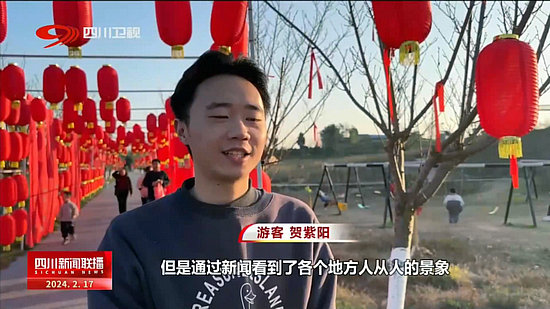 游客 賀紫陽(yáng):本來(lái)今年過(guò)年想出去玩的,但是通過(guò)新聞看到了各個(gè)地方人從人的景象,所以就想在家周邊找個(gè)可以玩的地方,這里交通便利,環(huán)境又好,可以享受四川人獨(dú)有的那份松弛感。