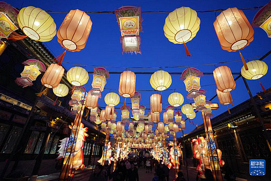 春節(jié)期間,在山西省太原市晉源區(qū)太原古縣城舉辦的“錦繡太原中國(guó)年·鳳舞龍城花燈會(huì)”上,各類(lèi)花燈流光溢彩、璀璨奪目,吸引眾多游人前來(lái)觀賞。