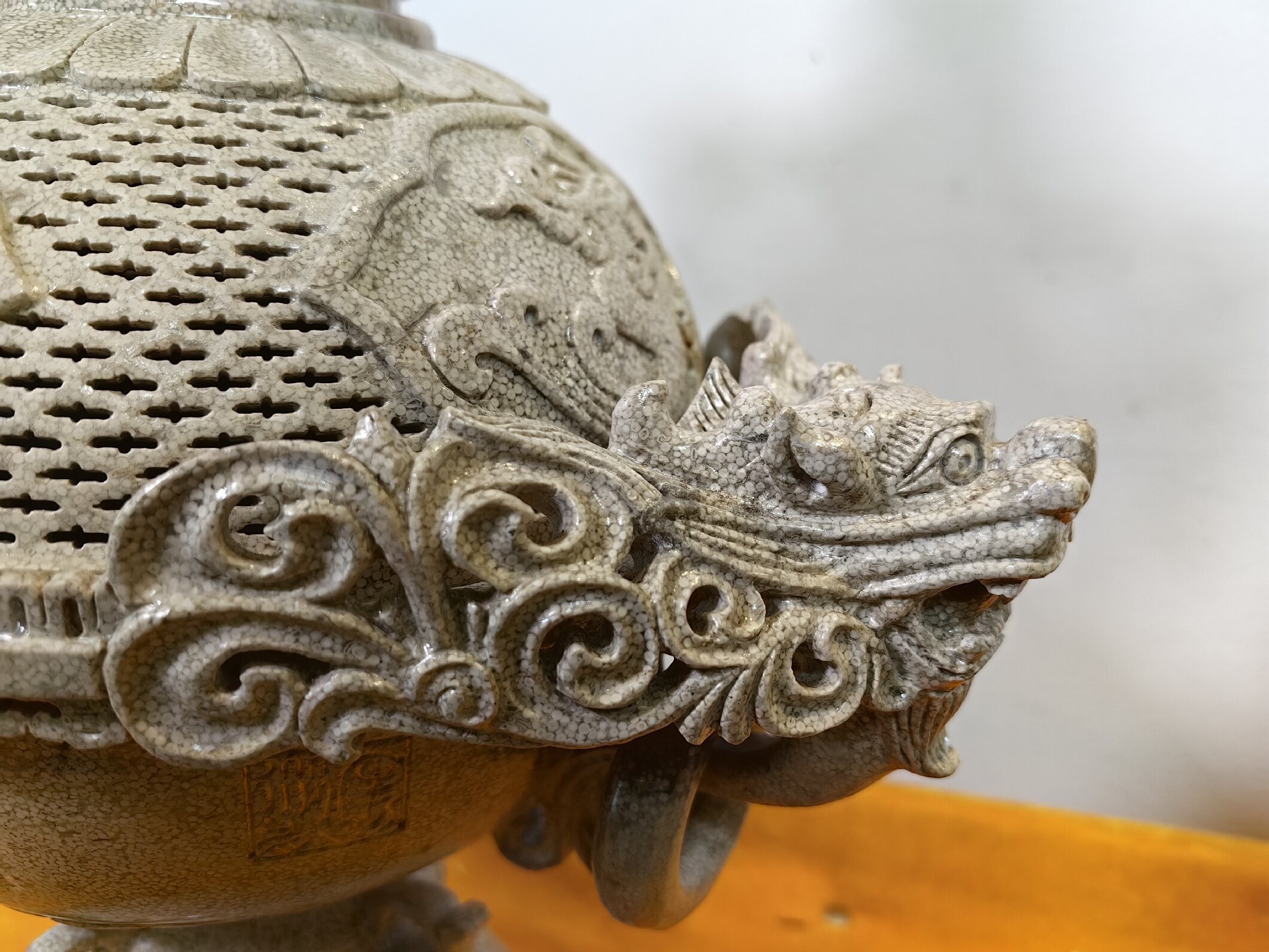 玉龍化石雕刻《龍鳳花熏》(局部)