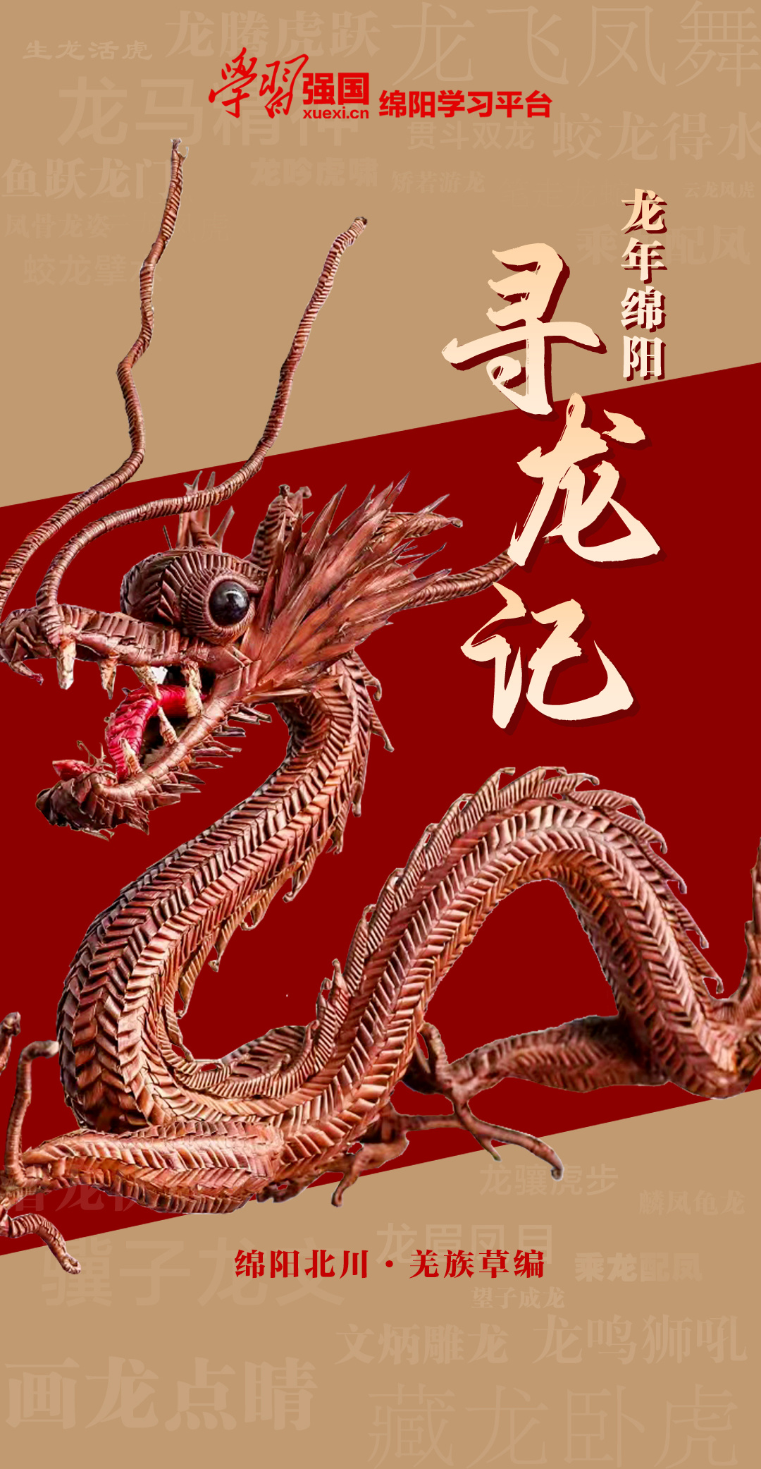 這些草編龍形態(tài)各異,有的騰空而行,有的靜臥昂首,還有的悠然漫步。這些作品,都是由省級非遺項目北川羌族草編代表性傳承人黃強和他的團隊制作的。所有的草編龍,都以棕葉等為原材料,綜合運用編、扎、剪、粘等手法編制而成。傳統(tǒng)的北川草編制作技藝和材料的巧妙運用,讓龍身具有特別的質(zhì)感和立體視效。