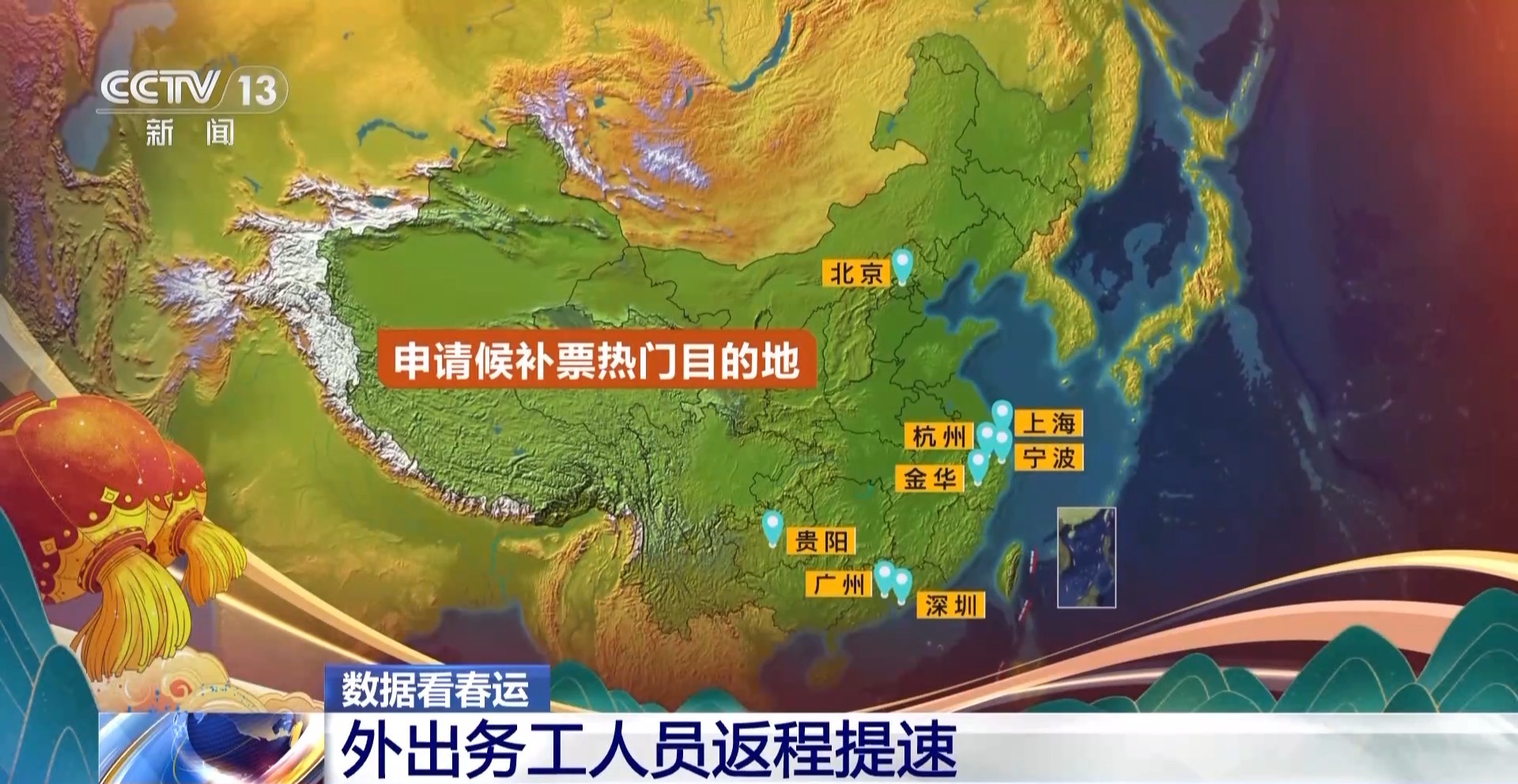 在12306平臺申請今天候補火車票的數(shù)據(jù)顯示,隨著外出務工人員的返程提速,候補票的熱門目的地已經(jīng)從北上廣深,逐漸向貴陽、杭州、金華、寧波等城市擴展。