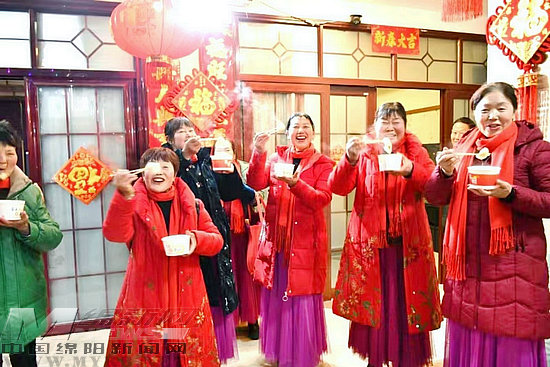 綿陽新聞網訊 炫目閃亮的燈火秀、優(yōu)雅靈動的扇子舞、熱氣騰騰的湯圓……2月22日晚,在涪城區(qū)新皂鎮(zhèn)梅家溝村孫家大院內,村民們正在家門口享受有滋有味的“節(jié)日大餐”。
