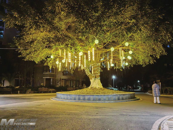 “春眠不覺曉……下一句是什么呢?”夜幕下,一對母子一邊在涪濱社區(qū)散步,一邊誦讀著詩詞燈串上的古詩。