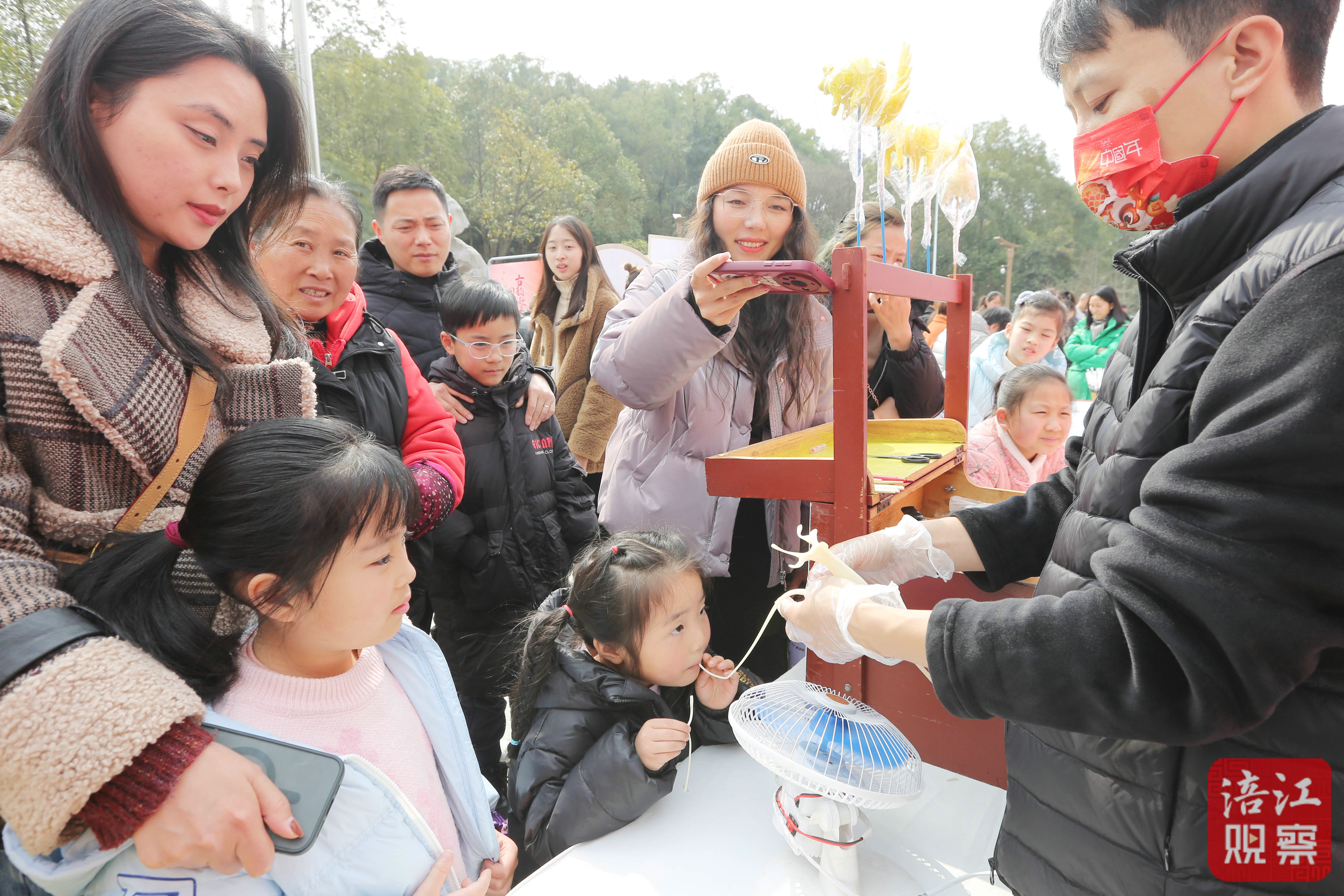 在展位上,蔡嘉茹陳列了近期創(chuàng)作的《過新年》等面塑作品。聽到陳嘉祥的要求,她立即忙活起來,幾分鐘后一條栩栩如生的龍就完成了。收到這份禮物,陳嘉祥的兒子特別高興。