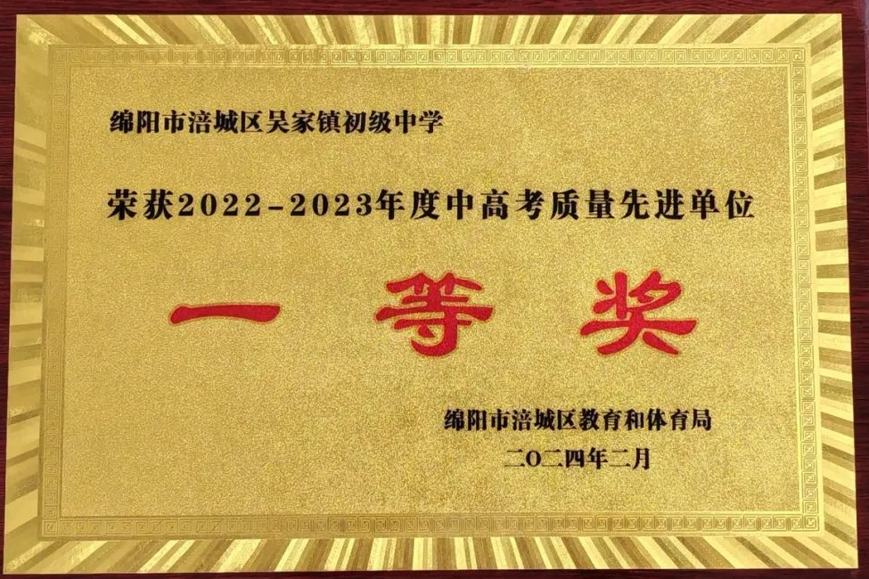 吳家中學(xué)榮獲涪城區(qū)2022-2023年度畢業(yè)生就近入學(xué)特等獎(jiǎng)、綜合績(jī)效考核一等獎(jiǎng)、教學(xué)質(zhì)量一等獎(jiǎng)、中考質(zhì)量一等獎(jiǎng)!