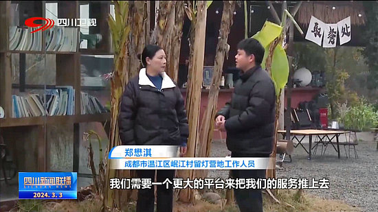 成都市溫江區(qū)岷江村留燈營(yíng)地工作人員 鄭懋淇:我們需要一個(gè)更大的平臺(tái)來(lái)把我們的服務(wù)推上去,還有一個(gè)就是我們招工用工很難。我們就希望由鎮(zhèn)上或者村上牽頭做一個(gè)數(shù)字化的服務(wù)平臺(tái)。