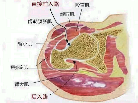 而直接前方入路全髖關(guān)節(jié)置換術(shù)是通過大腿前方的兩塊肌肉之間的間隙進入,拉開兩者下方的另一塊肌肉(股直?。┖缶涂梢郧逦乇┞扼y關(guān)節(jié)囊,對肌肉沒有任何損傷。
