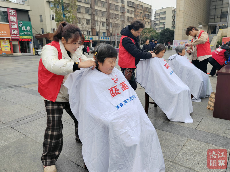 活動(dòng)中,大家來(lái)到轄區(qū)廣場(chǎng)為老人免費(fèi)理發(fā)。只見(jiàn)家長(zhǎng)們一只手拿著剪刀,一只手拿著梳子,神情專注地為老人剪發(fā),孩子們則在一旁協(xié)助理發(fā),有的為老人整理衣服,有的為老人捶腿揉肩。