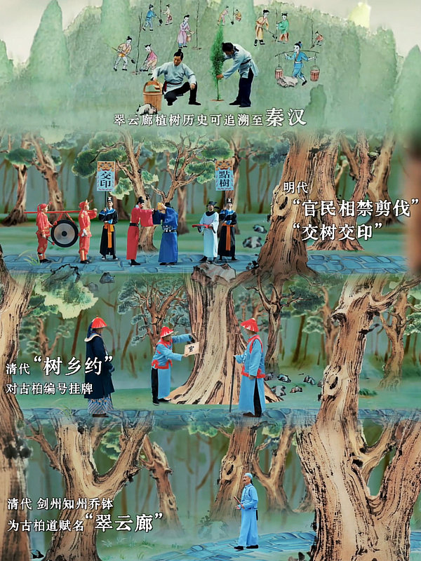 川臺用AI+國畫手法,還原了古蜀道與翠云廊的“成長史”,展現(xiàn)“三百里程十萬樹”的生態(tài)與人文之美。
