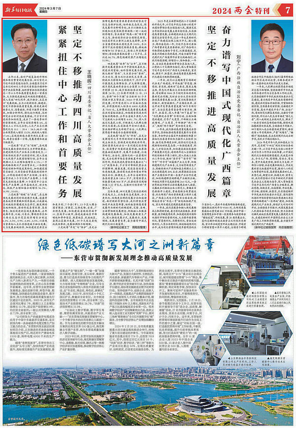 3月7日,《新華每日電訊》刊發(fā)四川省委書記、省人大常委會主任王曉暉署名文章《緊緊扭住中心工作和首要任務(wù) 堅(jiān)定不移推動四川高質(zhì)量發(fā)展》。