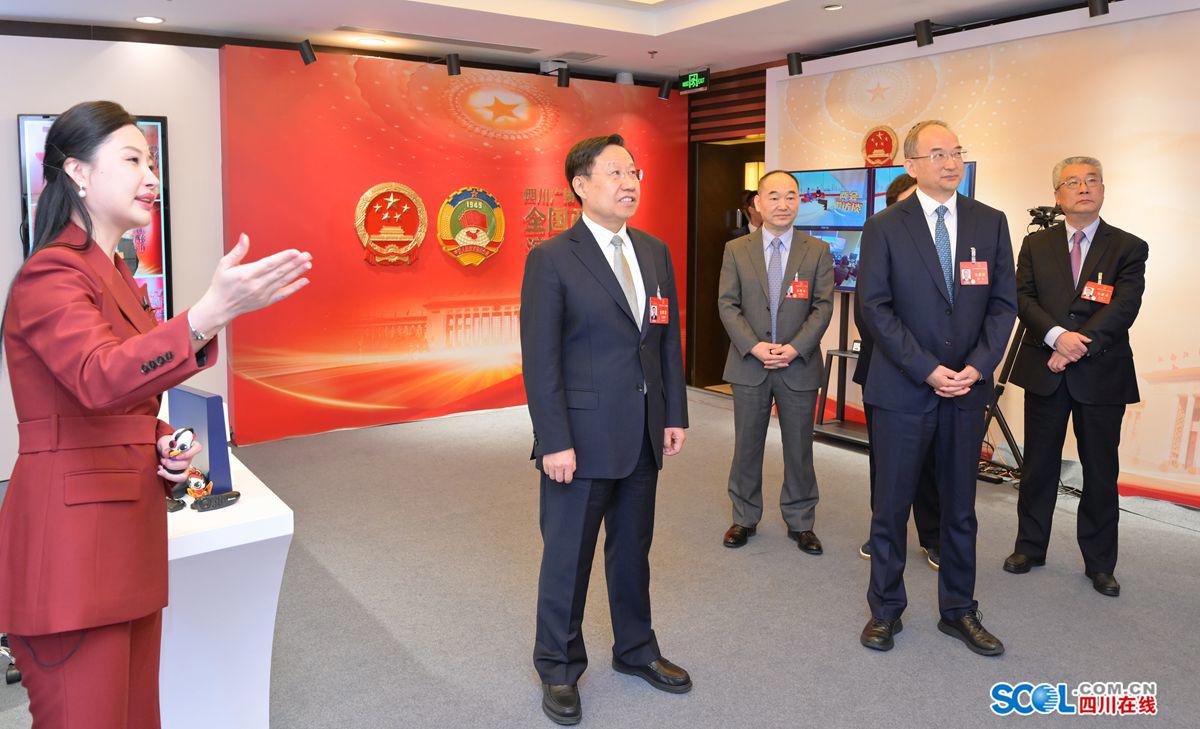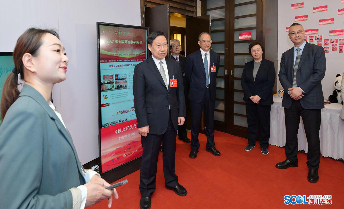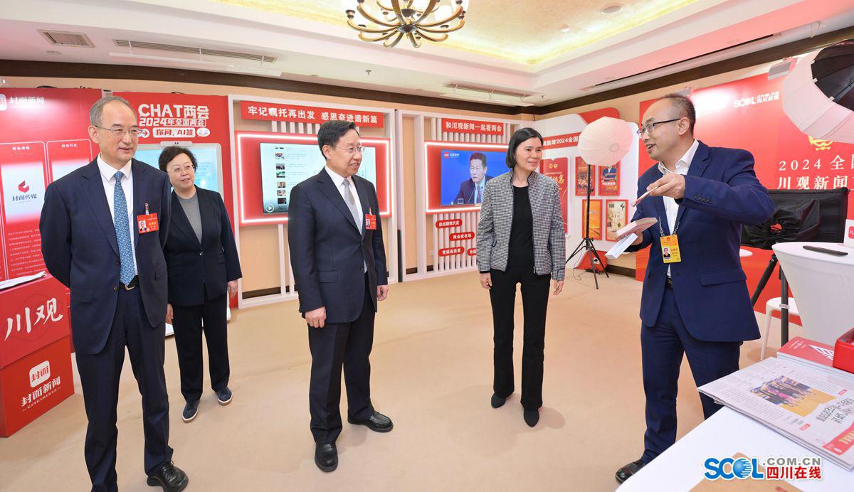 王曉暉、黃強先后來到四川日報報業(yè)集團、四川廣播電視臺和四川新傳媒集團設(shè)在駐地的演播廳,聽取各媒體宣傳報道總體情況介紹,詳細了解重大主題報道、重點選題策劃、人工智能技術(shù)賦能產(chǎn)品創(chuàng)新等情況,并饒有興致地察看全國兩會報道作品、特色文創(chuàng)產(chǎn)品展陳等。王曉暉對中央有關(guān)媒體和我省主要媒體全國兩會宣傳報道取得的階段性成效給予肯定,對大家的辛勤付出表示感謝。他說,今年全國兩會,是在新中國成立75周年、實現(xiàn)“十四五”規(guī)劃目標任務的關(guān)鍵一年召開的重要會議,舉國關(guān)注、舉世矚目。連日來,大家聚焦大會主題,緊貼民生關(guān)切,充分發(fā)揮媒體融合優(yōu)勢,堅持會內(nèi)會外緊密結(jié)合、北京四川時時聯(lián)動、前線后方密切配合,推出了一批有深度、有溫度、有力度的新聞報道,全面反映了大會盛況,展示了代表委員履職風采,展現(xiàn)了全省上下朝著全面建設(shè)社會主義現(xiàn)代化四川闊步前行的奮進姿態(tài)。希望大家發(fā)揚連續(xù)作戰(zhàn)精神,再接再厲、善始善終做好各項報道工作,為全國兩會圓滿成功營造濃厚氛圍。