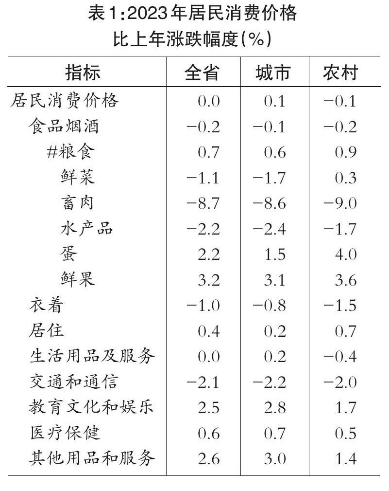 全年居民消費價格與上年持平,其中,醫(yī)療保健類上漲0.6%,居住類上漲0.4%,教育文化和娛樂類上漲2.5%,食品煙酒類下降0.2%。工業(yè)生產者出廠價格比上年下降2.4%,其中生產資料價格下降3.0%,生活資料價格下降0.6%;工業(yè)生產者購進價格比上年下降2.9%。