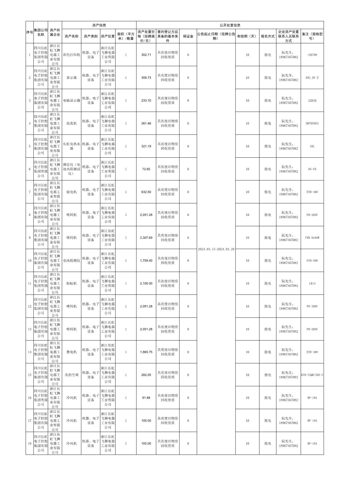 浙江長(zhǎng)虹飛獅電器工業(yè)有限公司資產(chǎn)處置公告
