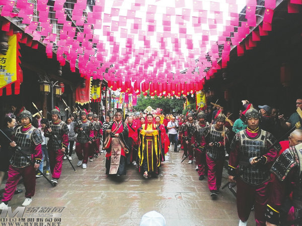 同時,該鎮(zhèn)以文為“媒”,深入挖掘和傳承郪漢歷史文化,以一年一度的農(nóng)歷“5·28城隍廟會”為龍頭,創(chuàng)新開展“郪王巡城”“川劇坐唱”“拜水祭龍”等文化活動,同時,編排郪漢舞蹈2支,出版書籍2部,培育省級非遺項目傳承人4人,由村、社區(qū)居民組成的4支100余人的文藝演出隊可隨時參與節(jié)慶活動。