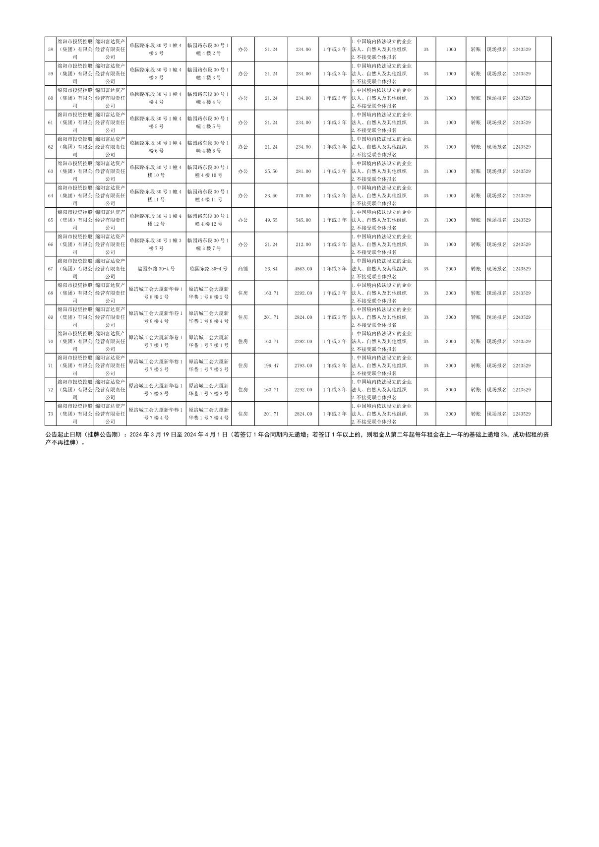 綿陽富達資產(chǎn)經(jīng)營有限責(zé)任公司資產(chǎn)出租公告