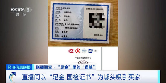 直播間以“足金 國檢證書”為噱頭吸引買家