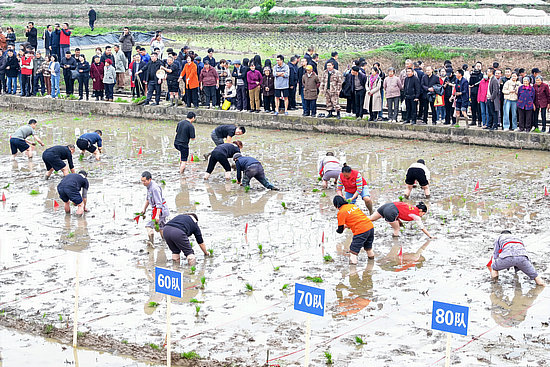 村民們進(jìn)行插秧比賽。