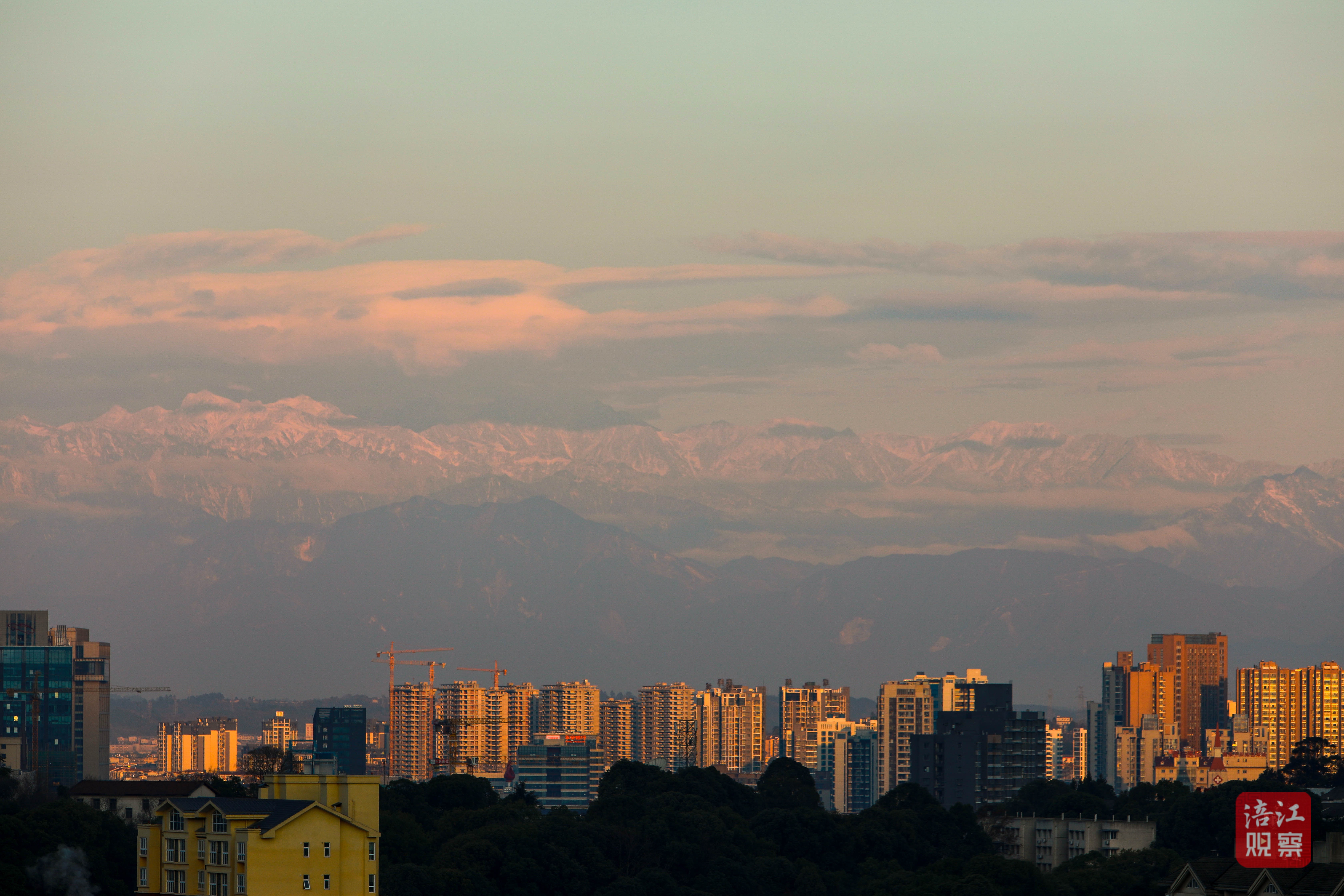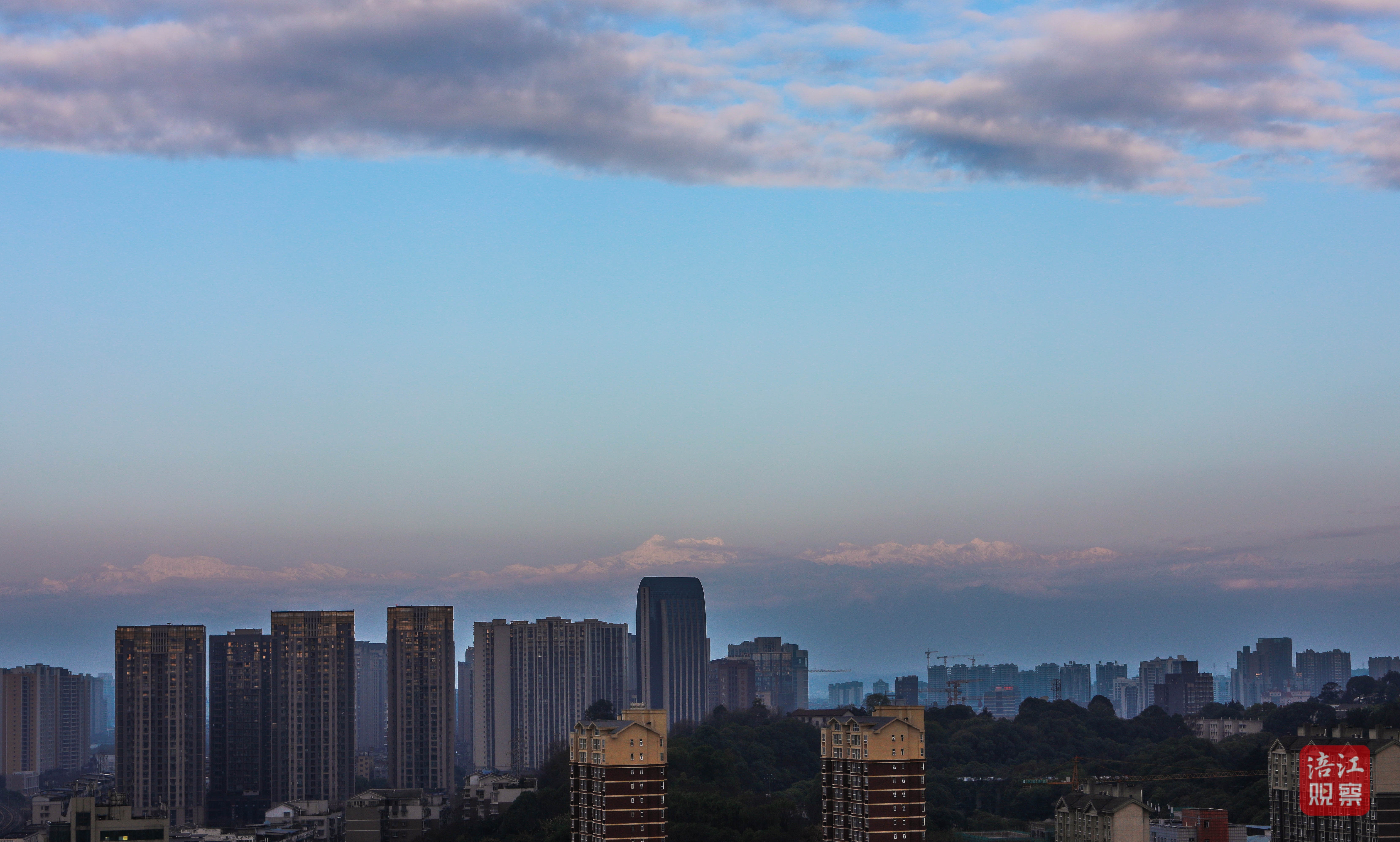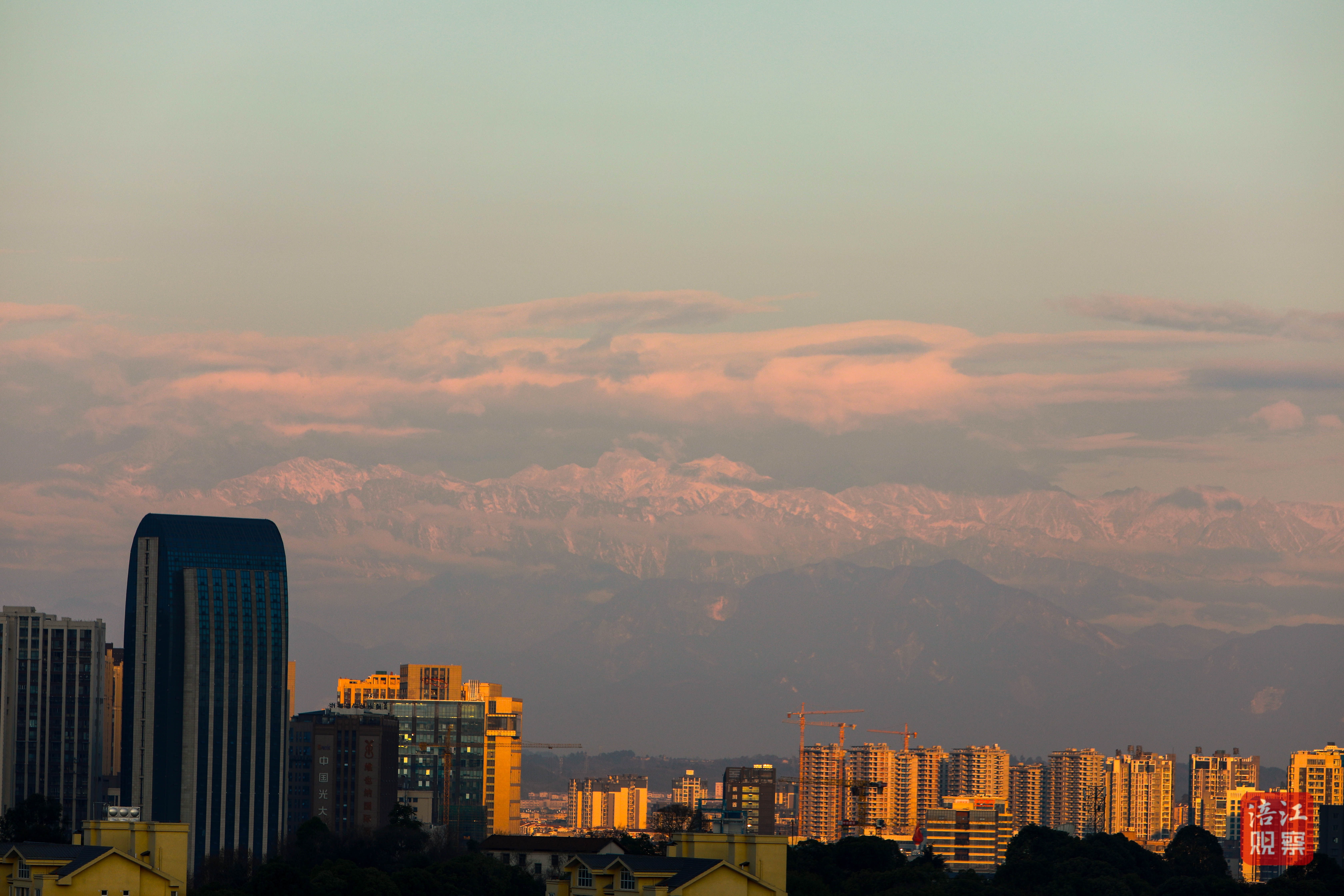 清晨,超高的能見(jiàn)度,讓綿陽(yáng)人有機(jī)會(huì)一睹“窗含西嶺千秋雪”的壯麗風(fēng)光。