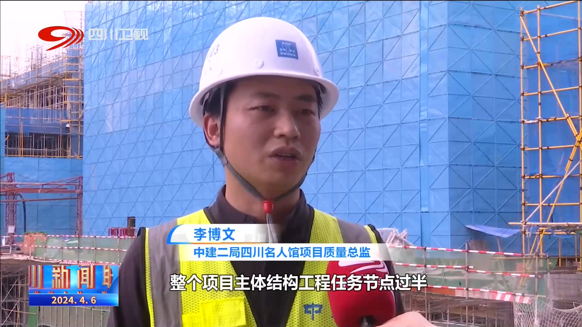 中建二局四川名人館項目質(zhì)量總監(jiān) 李博文:整個項目主體結(jié)構(gòu)工程節(jié)點任務(wù)過半,目前正處于主體施工關(guān)鍵階段,現(xiàn)場施工人員400人左右,根據(jù)總工期計劃,我們加強各類生產(chǎn)要素管理,科學(xué)合理有序推進(jìn),力爭在6月初實現(xiàn)全面封頂。