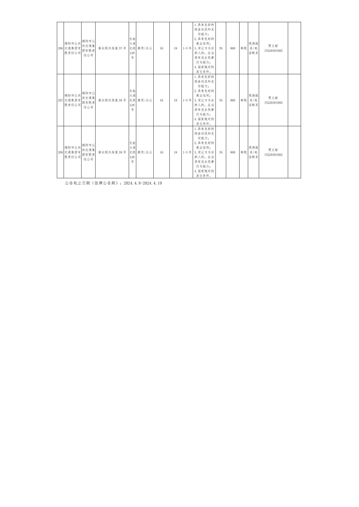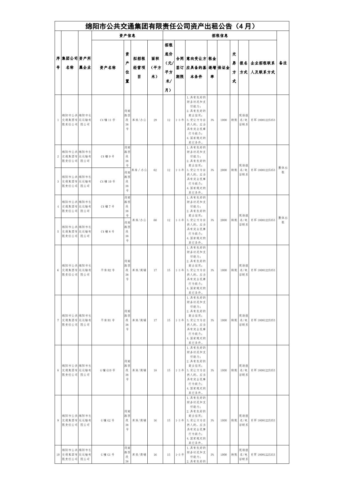 綿陽市公共交通集團有限責任公司資產(chǎn)出租公告(4月)