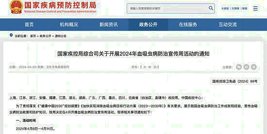 《“健康中國2030”規(guī)劃綱要》提出“到2030年全國所有流行縣達到消除血吸蟲病標準”。國家疾控局發(fā)布的關于開展2024年血吸蟲病防治宣傳周活動的通知明確,要加大重點地區(qū)、重點人群的宣傳力度,提高公眾對血防知識的認知和防護意識,共同落實綜合防治措施。