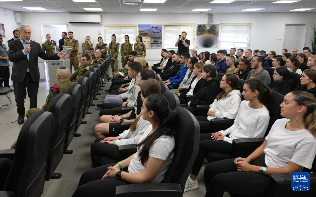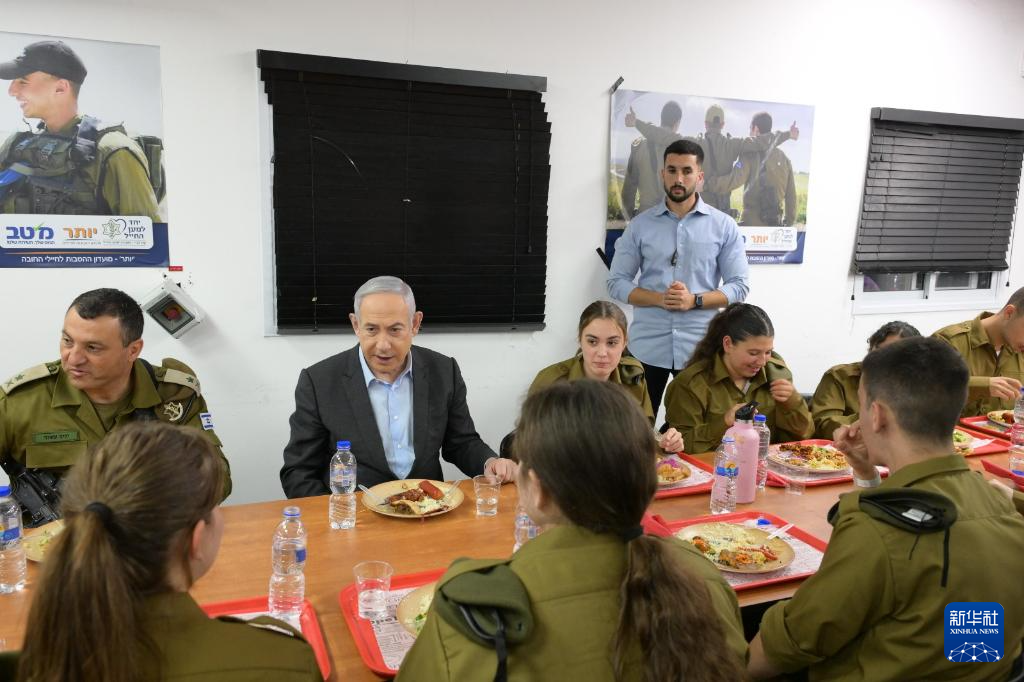 4月9日,以色列總理內(nèi)塔尼亞胡在特拉維夫附近的一個(gè)軍事基地與士兵交流。新華社發(fā)(以色列政府新聞辦公室供圖)