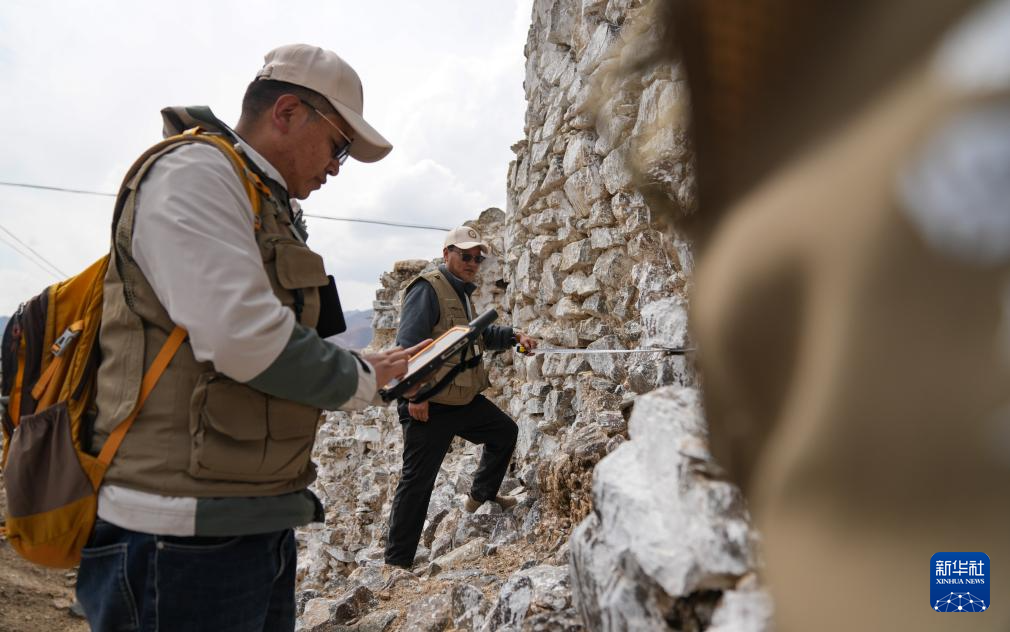 4月11日,普查人員在曲果崗塔群遺址現(xiàn)場(chǎng)開展數(shù)據(jù)采集。新華社記者 晉美多吉 攝