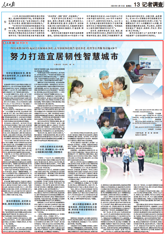 原標(biāo)題:四川成都2019年起試點(diǎn)開展城市體檢,去年依據(jù)體檢報(bào)告建設(shè)養(yǎng)老、托育等公共服務(wù)設(shè)施430個(gè)