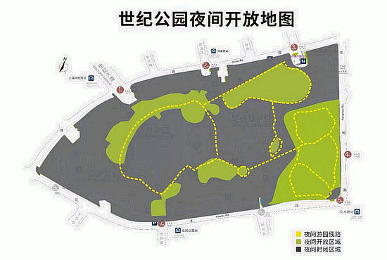 世紀(jì)公園5月1日擬實(shí)行24小時(shí)開放的區(qū)域示意圖。(園方供圖)