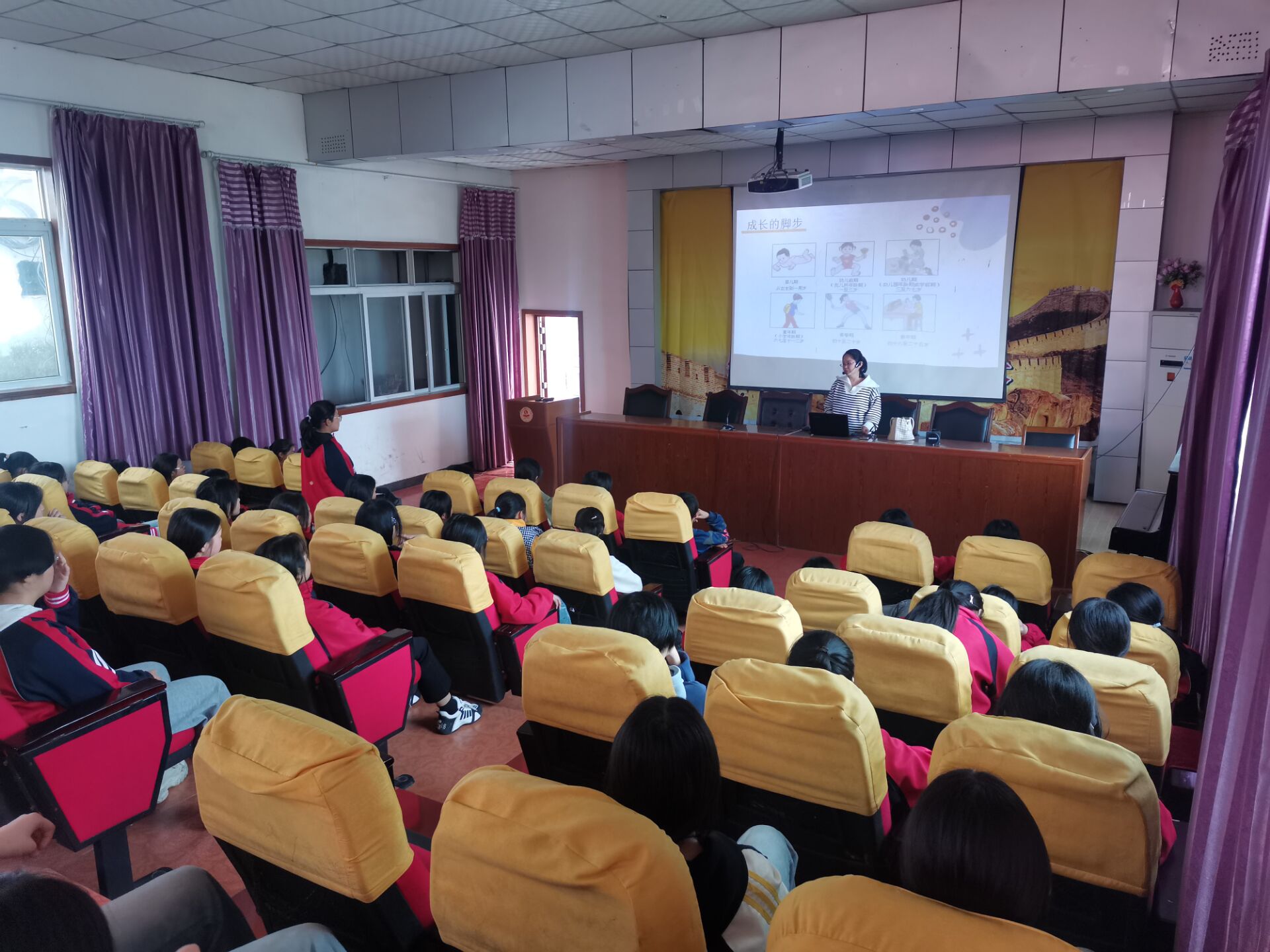 楊麗老師根據(jù)初中階段女生的生理、心理特點及平時教育工作中發(fā)現(xiàn)的問題,精心選擇材料,組織內容。她以鮮活的事例、生動的語言講述了女生青春期的身體和心理行為變化,并就“如何保護自己”為同學們提供了種種切實可行的方法。在與學生互動的環(huán)節(jié)中,楊麗了解到女生們還存在交友困惑、如何與父母相處、學習壓力等問題,并作了針對性的指導。