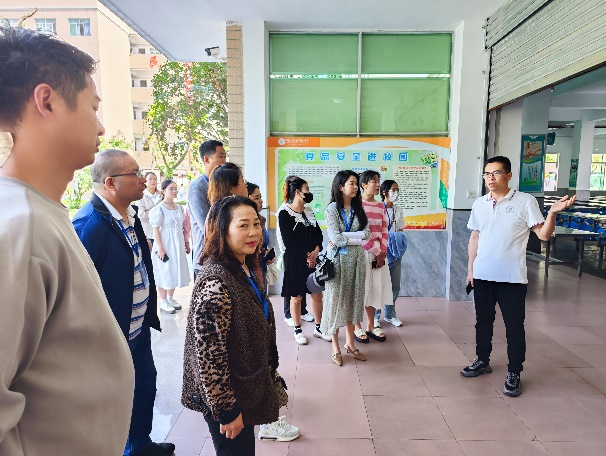 參觀食堂就餐區(qū)。首先,董華章主席向家長們詳細(xì)地介紹了學(xué)校食品安全管理組織架構(gòu)、食品安全管理制度、蔬菜肉類從“食材”到“佳肴”的全流程、員工日常管理和培訓(xùn)以及食堂改擴(kuò)建規(guī)劃等工作;