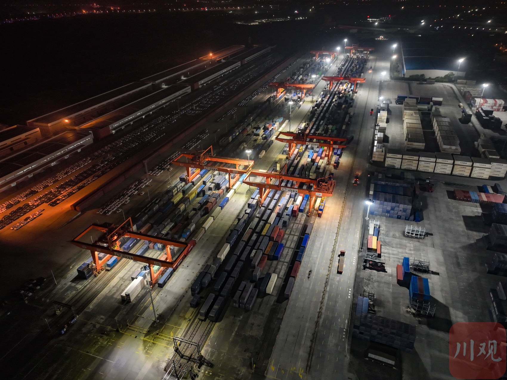 燈火通明的成都國際鐵路港。川觀新聞?dòng)浾?李強(qiáng) 攝(資料圖)
