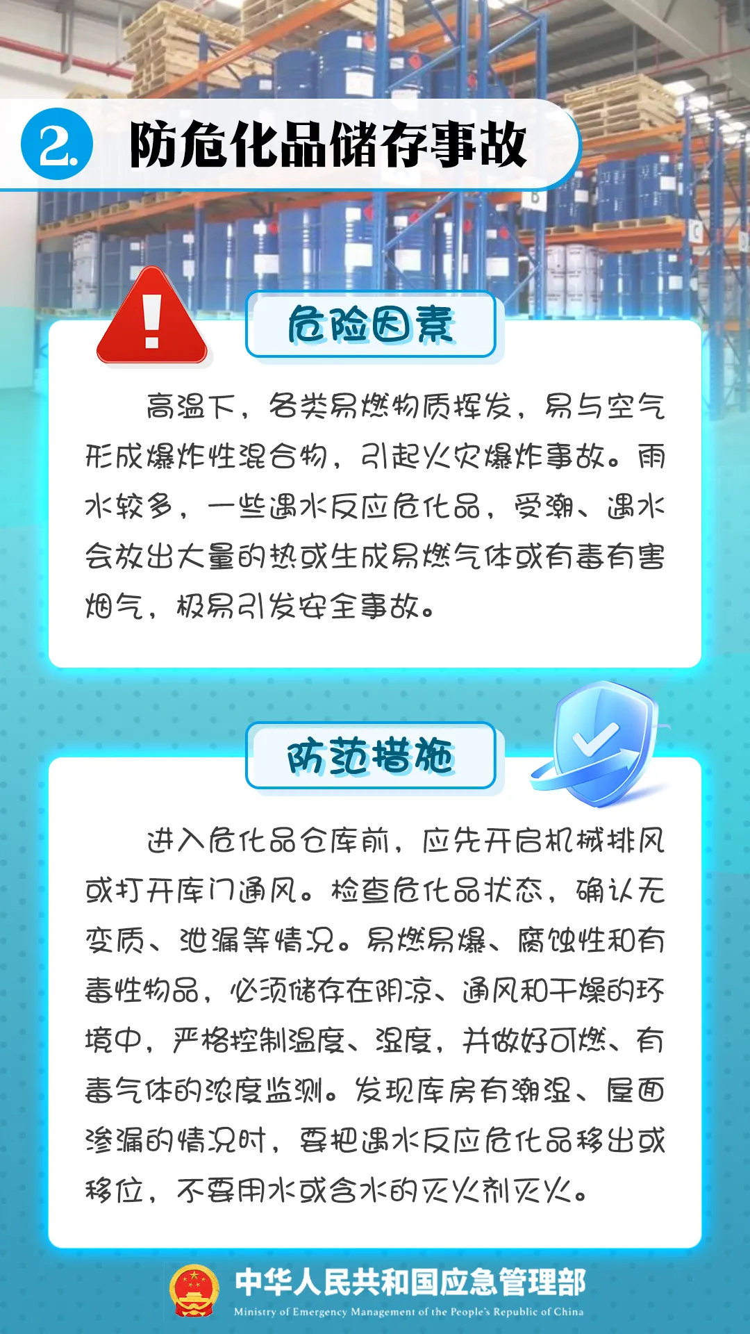 進入夏季,高溫、高濕、雷電、暴雨、大風等極端天氣增多,危險化學品在生產(chǎn)、運輸、儲存、使用等環(huán)節(jié)均存在較大安全風險,如果企業(yè)不嚴格落實安全管理相關規(guī)定,極易引發(fā)安全事故。